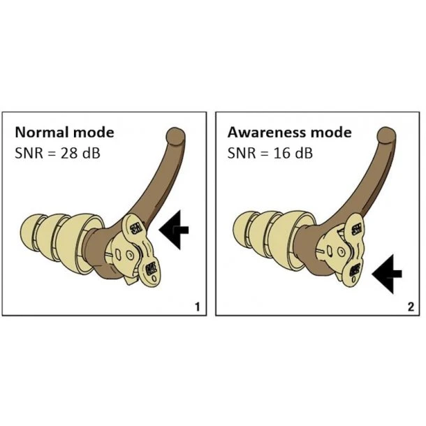 Peltor Switch er et aktivt/passivt høreværn. Med lukket “kontakt” får du den samme dæmpning, som ved normale høreværn, mens du ved at åbne “kontakten” aktiverer omgivelseslyd og du kan let kommunikere med folk og høre hvad der foregår omkring dig. Når høreværnet er lukket er dæmpningen på 28 db og når de er åbne er dæmpningen på 16 db. Kan bruges med med handsker uden at tage dem ud af ørene. Fungerer derfor utroligt godt på jagt og skydebanen. Der medfølger 3 ørepropper, så de kan tilpasses.