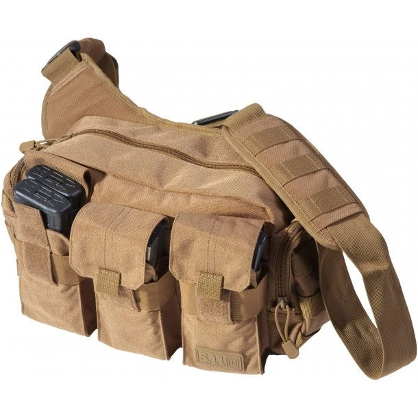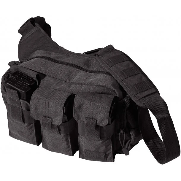 Bail Out Bag fra 5.11 Tactical er oprindeligt designet til skytteteams, der altid skal være beredt til akutte operationer i felten. Tasken, der bliver brugt af militær og politiforbund i hele verden, har plads til seks standard AR magasiner og er desuden udstyret med MOLLE til flere pouches. Fremstillet af 1050D nylon.