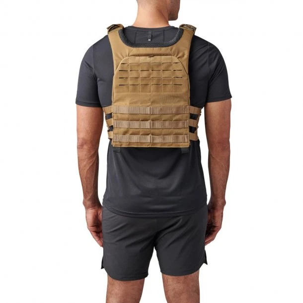 Tactec Trainer Vægtvest fra 5.11 er designet specielt til træning, og er fremstillet af slidstærkt polyester, der holder til lidt af hvert under hård aktiv træning. Vægtvesten er udført med justerbare skulderstropper for perfekt pasform, som er fremstillet i åndbar mesh, som sørger for optimal åndbarhed og den justerbare stretch i bund sørger for at optimal stabilitet, og de små lommer i siderne giver mulighed for sikker opbevaring af dine værdigenstande.