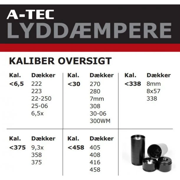 Hertz 119 fra norske A-TEC sætter nye standarder for lyddæmpere med en ny og forbedret teknologi. Hertz 119 har et meget kompakt design for bedre ydelse. Hertz 119 har en støjreduktion på 29 dB på en .308 og reducerer effektivt rekylen. Dette er en af de bedste lyddæmpere på markedet. Denne model passer til følgende kalibre: .270, .280, 7mm, .308, 30-06 og 300WM. Kontakt os for vejledning til valg af lyddæmper.