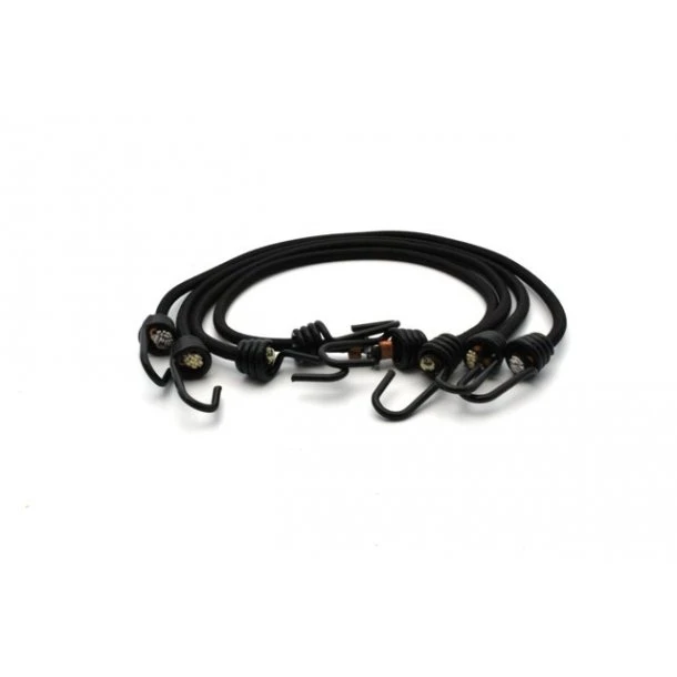 4 stk. gummikabler med kroge med en tykkelse på 5 mm. Hvert gummikabel har en længde på 80 cm.
