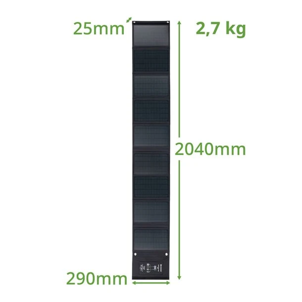 Mobile Solar Solcellepanel 60W fra Bresser er udviklet i et moderne og fladt design med robuste, støv- og vandafvisende egenskaber, så du nemt kan folde det sammen som en lille pakke og opbevare det i din bagage, hvorfor det er super nemt og bekvemt at have med på tur. På denne måde sparer du også en del plads i din oppakning.
