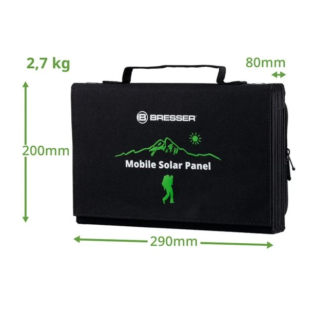 Mobile Solar Solcellepanel 60W fra Bresser gør dig selvforsynende på farten uanset, hvor turen går hen; camping, sejltur, vandretur eller stranden, hvor du ikke kan undvære din telefon, tablet eller andet strømdrevet grej. Denne model bruger solens stråler til at generere strøm til dine enheder, når du er på farten, hvor du ikke har adgang til en almindelig stikkontakt. Denne måde er endda helt og erdeles gratis, og hvem kan ikke lide det?