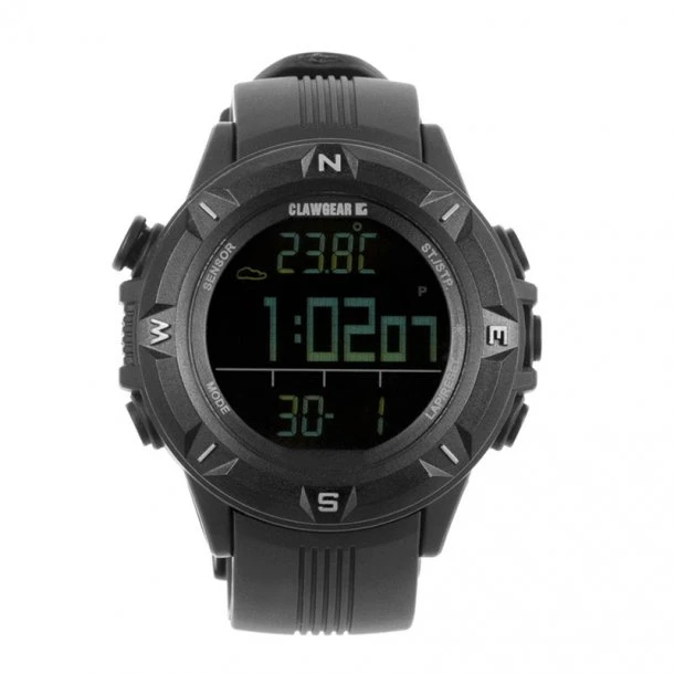 Mission Sensor II i Sort fra Claw Gear er et pålideligt ur til militær og ordensmagt som er yderst funktionelt. Uret har en kasse i polycarbonat, et klassisk design uden metaliske dele der kan give genskin, digital kompas, barometer og meget mere. Lyd kan slås fra.