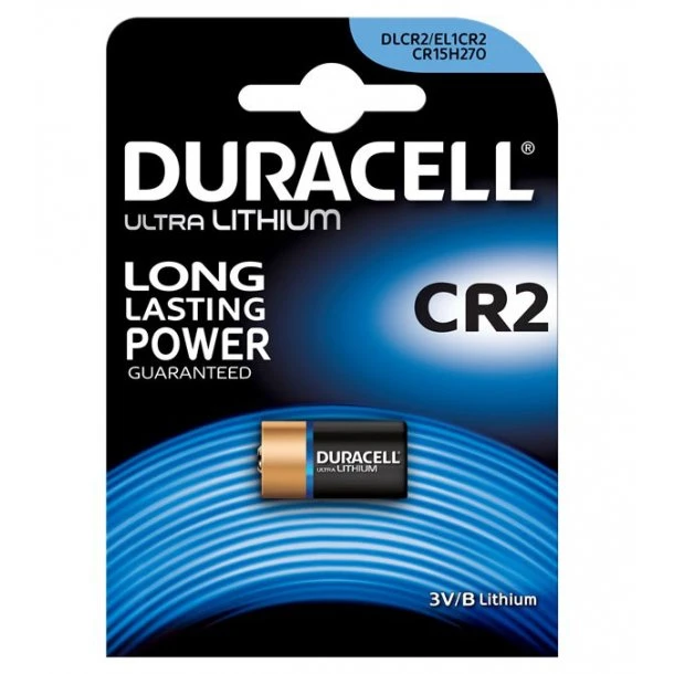 CR2 batterier fra Duracell er et holdbart 3 Volts batteri der bruges i fx et digital kamera & alarmsensor.