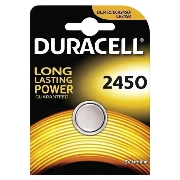 CR2450 knapbatteri fra Duracell med stor levetid. Batteriet har en spænding på 3V. Pakken indeholder 1 stk. 3 volts CR2450 batteri.