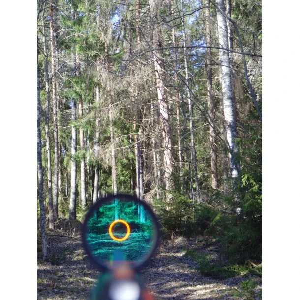 - Dobbelt parallaxfrie linser så ringen altid viser hvor du rammer, uanset om du skuldrer geværet skævt