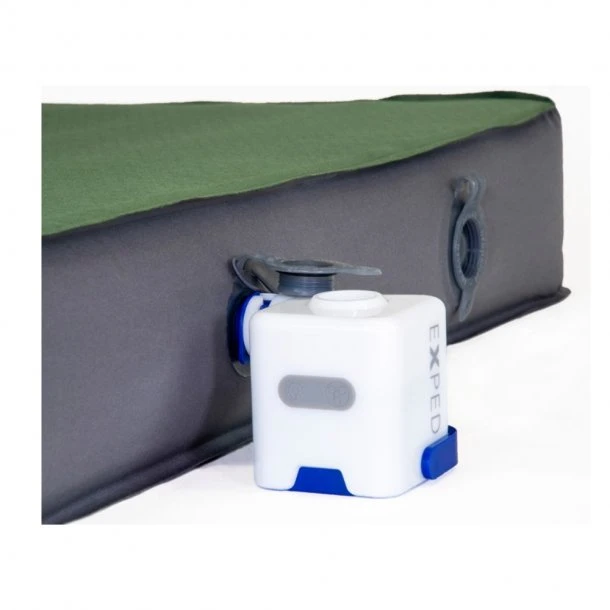 Med den elektriske Widget Pumpe fra Exped kan du nemt og hurtigt puste dit underlag eller din luftmadras op. Især ideelt hvis du er udmattet efter en heldags vandretur og bare gerne, eller hvis du er ankommet sent til lejren og bare gerne vil direkte i seng. Den er kompakt og vejer og fylder minimalt, så det gør ikke den store forskel at tage den med.