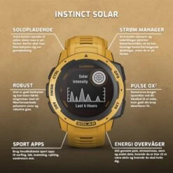 Med et Garmin Instinct Solar er det nu muligt at oplade dit outdoorur på farten. Med hjælp fra solceller bliver dit instinct solar hele tiden ladet op, så den får et kæmpe boost i batterilevetid, hvis vejret tillader det. Instinct solar modellen er robust outdoorur der er designet til at overleve vildmarkens strabadser og kan endda overleve ned til 100 meters dybde.