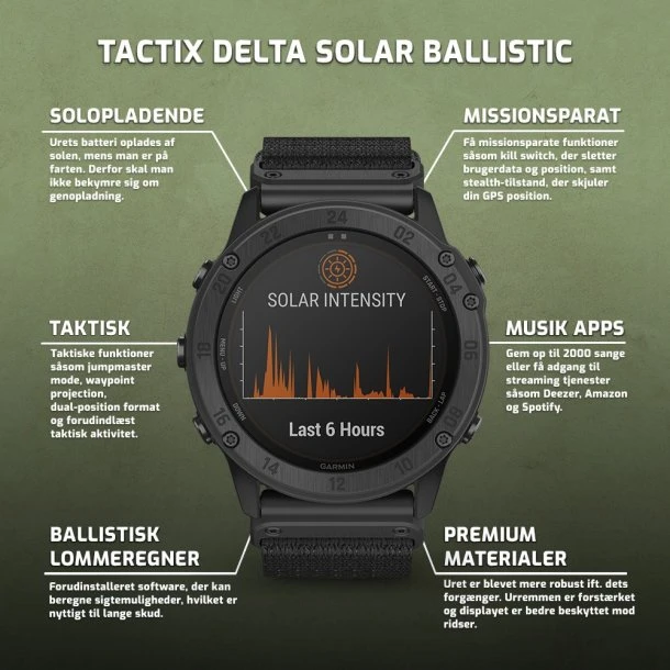 Dette Tactix Delta Solar Ur kan både benyttes af professionelle soldater og entusiastiske outdoorfolk. Uret har mulighed for at lave ballistiske udregninger til langdistanceskydning som PRS. Uret har desuden flere lækre taktiske funktioner såsom “kill switch”, der fjerner alt brugerdata og en stealth-tilstand, der kan deaktivere deling af placering og forbindelse til netværk. Uret har også installeret en ballistik software, der kan hjælpe med at beregne sigtemuligheder, hvilket er meget nyttigt i forhold til lange skud.