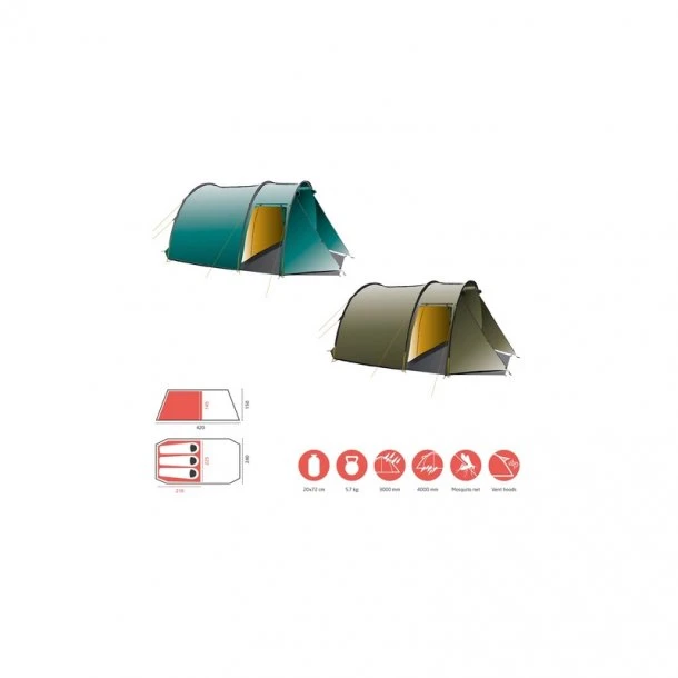 Robson 3-personers telt er et stort rummeligt tunneltelt med hele to indgange i den store apsis. Robson teltet har desuden 2 adskilte soverum med plads til 3 personer i alt.