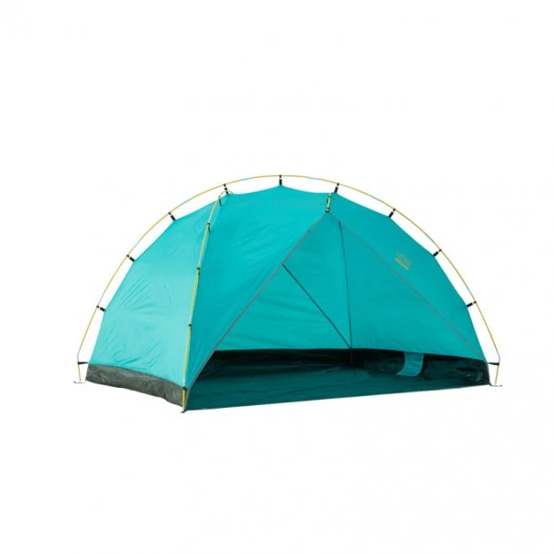 Tonto 3-personers strandtelt fra Grand Canyon er ideel til at nyde strandlivet med. Strandteltet kan hurtigt blive sat op og pakkes sammen igen. Tonto 3-personers strandtelt fra Grand Canyons rygstang og to små stænger klemmes til strandteltet, og med velcro-sandlommer som kan fyldes med sand, kan strandteltet sættes nemt op. Strandteltet tilbyder UV-beskyttelse og afskærmer mod vind og sol.