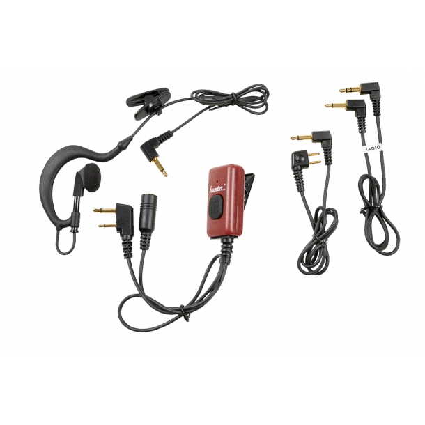 Headset fra mærket Hunter. Kommer med en øresnegl og har en “push to talk” funktion. Dette headset er kompatibel med alle Hunter radioer.