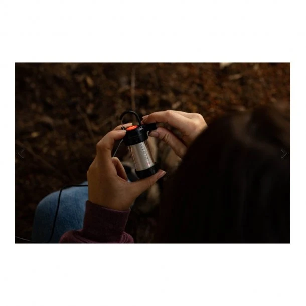 Lanternen oplades via. et praktisk magnetisk ladesystem, hvorfor du aldrig skal løbe tør for lys i din lygte. Derudover er Lanternen udstyret med en transport lås, der sikrer, at lampen ikke tændes utilsigtet under transport og opbevaring. Ydermere features lanternen 6 lysprogrammer inkl. et rødt lys og en karabinkrog til ophængning.