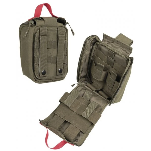 Pouchen fra Mil-Tec er en individuel førstehjælps taske. Pouchen er praktisk i felten, og åbnes nemt med en enkelt bevægelse. I hektiske situationer er åbningen let, at identificere da den er lavet i en rød farve. Pouchen er rummelig, og kan indeholde alt det vigtigste til en førstehjælpstaske. Den er desuden udstyret med elastiske indlæg, som sikrer at dine redskaber bliver på deres plads, og ikke ligger løst i pouchen.
