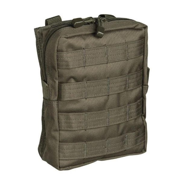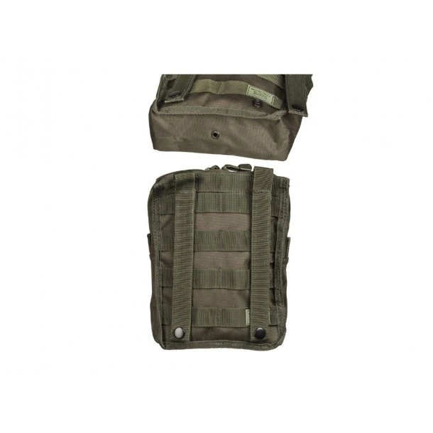 Molle Belt Pouch Large fra Mil-Tec er en stor praktisk bæltetaske. Tasken er udstyret med MOLLE på for og bagsiden så der kan fastsættes ekstra udstyr. Tasken har en tovejs lynlås så tasken nemt kan åbnes og lukkes. Der er et drænhul i bunden af tasken så vand og fugt kan undslippe.