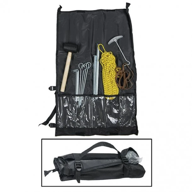 Dette teltsæt fra Mil-Tec indeholder alt det essentielle du har behov for når du er på telttur. Hvem har ikke prøvet at miste en pløk til teltet? Mil-Tec har tænkt på det hele og har netop lavet dette teltsæt så man altid har en ven i nøden. Foruden alle de fornødne værktøjer kommer de også i en smart taske af polyester, som er let at transportere. Læs produktbeskrivelsen for at se hele taskens indhold.