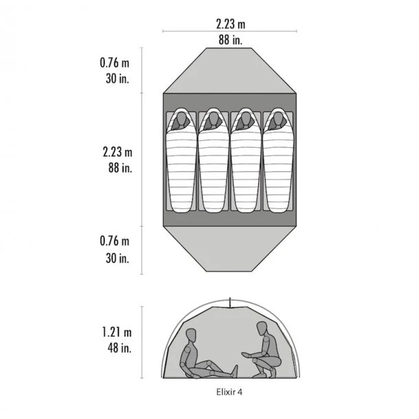 Elixir 4-personers Telt inkl. Footprint fra MSR er et alsidigt telt fremstillet i polyester, nylon og micromesh for at give ventilation og varme. Det er produceret i den bedste kvalitet for at give dig den bedste oplevelse under den blå himmel.