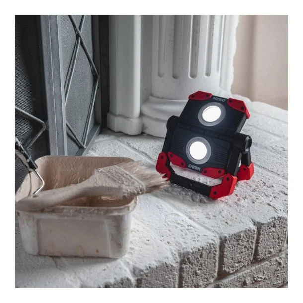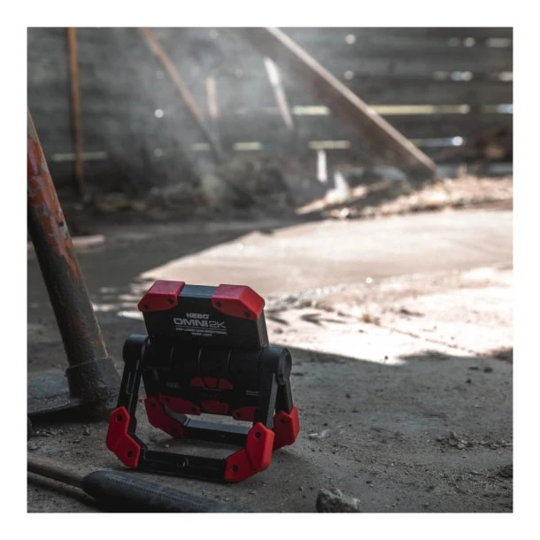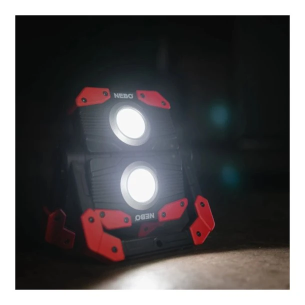 Nebo – OMNI 2000 Genopladelig Arbejdslampe 2000 Lumen er med dens 2.000 Lumen og ved at den du kan indstille den i forskellige retninger, den perfekte arbejdslampe. Lampen er udstyret med paneler og magnetiske håndtag som kan rotere for at give lys hvorend der er brug for det. Arbejdslampen er genopladelig, og er faktisk et multi-funktionelt produkt i det at den også kan bruges som powerbank.