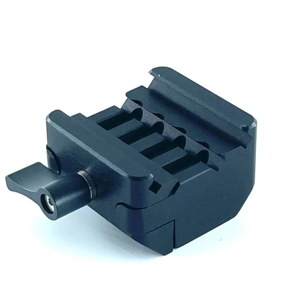 Skydestok hoved med picatinny profil i bunden og ARCA swiss i toppen. Hovedet benytter et 3/8-UNF gevind så den passer på Drakensberg 55mm Ballhead. Kan eksepmelvis monteres som hoved på en “Drakensberg Carbon Hunting Tripod Skydestok“.