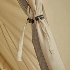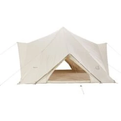 Midgard 20 Bomuldstelt (10-personer) fra Nordisk er fremstillet med flere smart detaljer – alle fire døre er med et overhæng, der skal beskytte mod sol og regn.