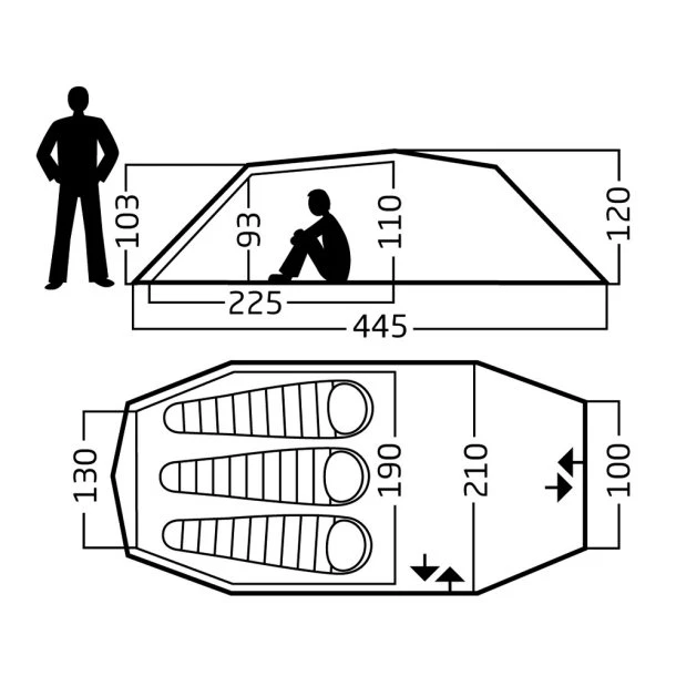 Teltet er et kompakt 3-personer telt, som ikke går på kompromis med hverken komfort eller god plads. Teltet er designet som et tunneltelt, hvorfor det også har høj stabilitet i vind og vejr. Teltet er udviklet med en øget vinkel på vinklen af buen, som giver følelsen af mere plads, når du sidder tæt ved væggene.