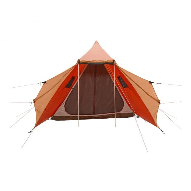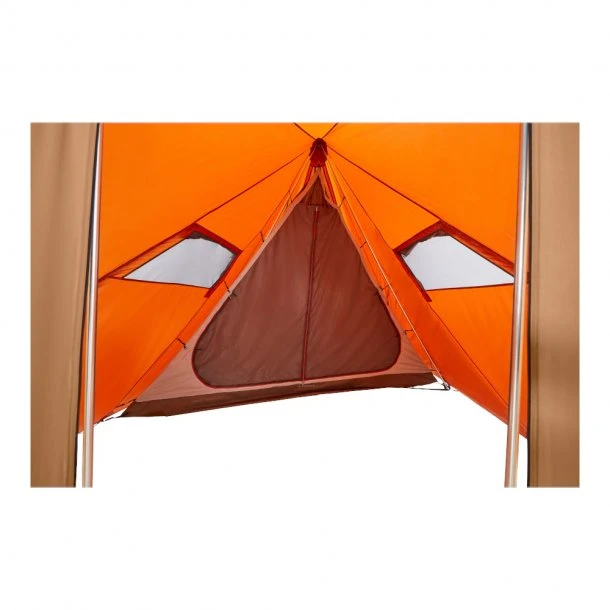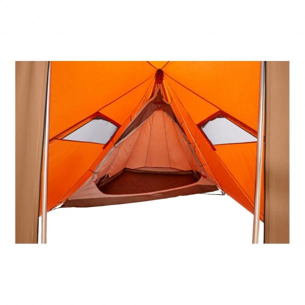Med et Thrymheim 5-personers telt får du et rummeligt telt med plads til familien. Teltets design er en unik blanding af tipi og hytte, som sikrer at i kan skille jer ud på turen. Teltet har mange funktioner som gør det muligt at byde naturen indenfor, og sikrer jer samtidigt et godt indeklima. Turtle Hub® teknologien fra Nordisk betyder, at du får et tipi lignende telt men uden en centerstang, teknologien gør foruden dette teltet let at slå op og utroligt holdbar.