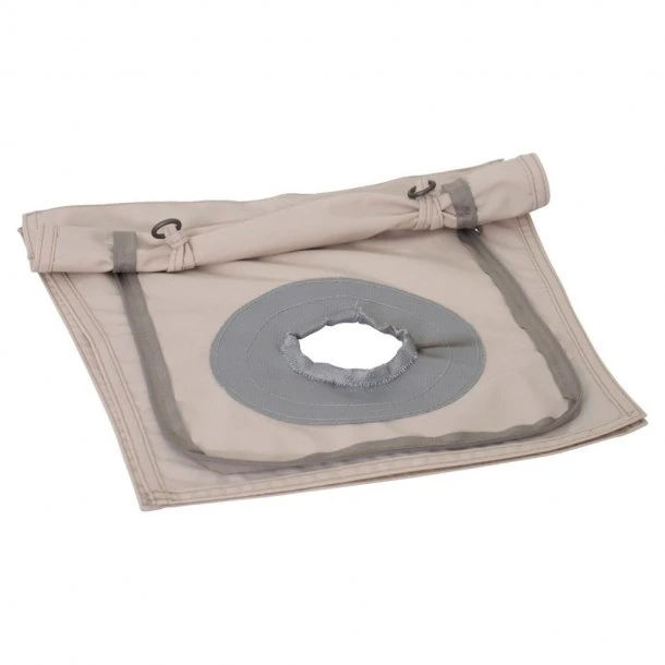 Denne Torden Chimney Exit kan du bruge til at lukke skorstenshullet, når teltovnen ikke er i brug. Bomuldsteltene fra Nordisk er nemlig ikke udstyret med udtag til en skorsten, så derfor er denne en god løsning netop til dette. Skabelon medfølger, så du nemt kan skære hul i teltet. Når hullet er lavet skal den placeres hen over hullet på hver side, og derfra holdes sammen ved brug af kraftige magneter. Det kan også være en løsning at sy den fast. Under laget der lynes med lynlås, er der et glasfiberforstærkende udtag, der kan tilpasses de traditionelle teltovne med den fleksible åbningsløsning.