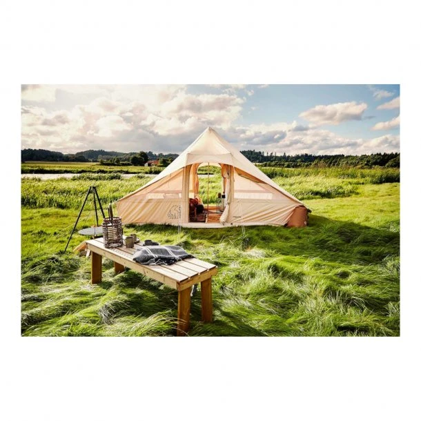 Utgard 13.2 Telt (6-pers) fra Nordisk er næsten som et hus blot i teltform, hvor der er god plads til 6 sovende personer. Teltet er ideelt til glamping, og det er designet med en dør og med 4 gode vinduer er der sikkerhed for god ventilation, udsyn og lys. Alle døre og vinduer i Utgard 13.2 Telt (6-pers) fra Nordisk er udstyret med myggenet, og den åndbare bomuldsdug giver et rigtig godt og svalt sovemiljø. Kabinen i teltet udgør ét stort rum, men det kan udstyres med ekstra tilbehør som et skræddersyet gulv, der lynes på, samt to udtagelige sovekabiner.