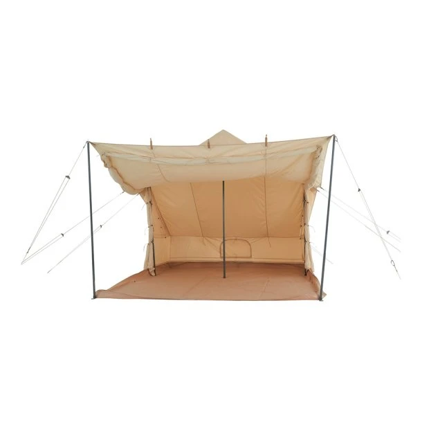 Alle døre og vinduer i teltet er udstyret med myggenet, og den åndbare bomuldsdug giver et rigtig godt og svalt sovemiljø. Kabinen i teltet udgør ét stort rum, men det kan udstyres med ekstra tilbehør som et skræddersyet gulv, der lynes på, samt to udtagelige sovekabiner.