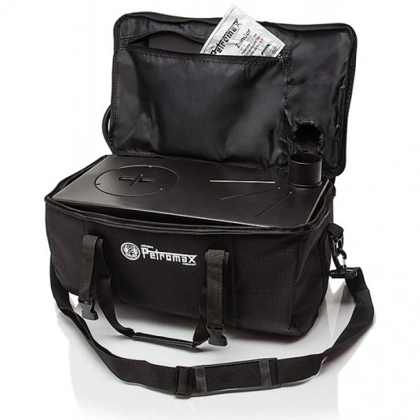 Smart taske til Loki Teltovnen fra Petromax. På toppen kan accessories fastgøres med to klips. Tasken er fremstillet i robust ripstop materiale, så den kan holde til dine mange ture. Indeholder to aftagelige bærehåndtag og en justerbar skulderstrop.