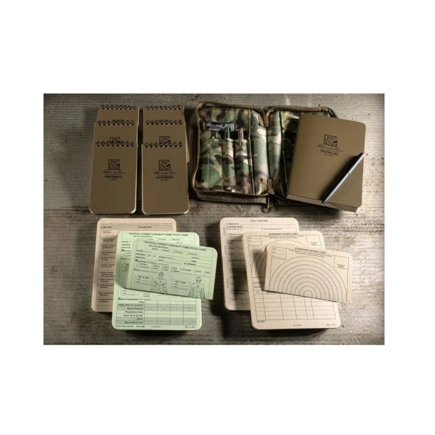 Indeholder en vandtæt taktisk notesbog, et vandtæt cover og en All-Weather kuglepen der kan skrive på vådt papir. Designet til at beskytte noter, ordrer, koordinater, træningssprogtips og kort for militær personel. Et “Rite In The Rain Field Kit” er et vigtigt værktøj i felten.