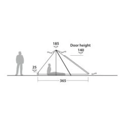 Teltet kan nemt og hurtigt sættes op takket være den ene aluminiumsstang, der er særdeles stærk i forhold til vægten på teltet. Stangen er vippet en lille smule bagud, hvilket gør adgang til teltet let og giver mere plads i teltet, hvor I kan sove fire personer.