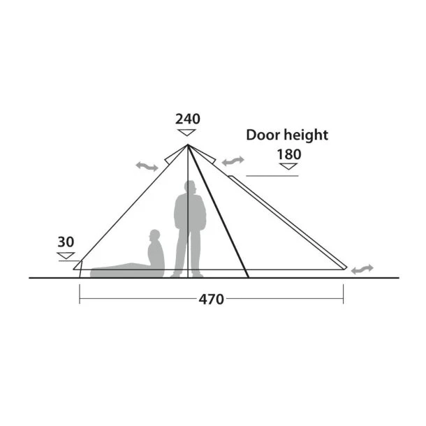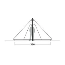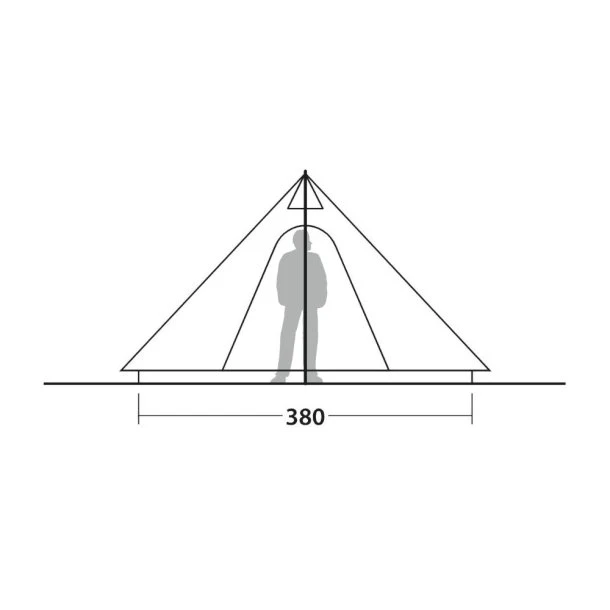 Teltet kan nemt og hurtigt sættes op takket være den ene aluminiumsstang, der er særdeles stærk i forhold til vægten på teltet. Stangen er vippet en lille smule bagud, hvilket gør adgang til teltet let og giver mere plads i teltet, hvor I kan sove syv personer.