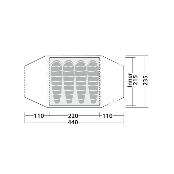 Goshawk 4-personers Telt fra Robens’ indertelt er udviklet med vertikale vægge for- og bagpå med store døre for at give mere plads samt gøre det muligt at komme ind og sidde uden at belaste teltets materiale.