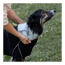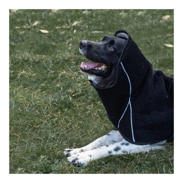 Solution Hunde Tørredragt Sort fra Siccaro er designet med et superabsorberende lag af viskose indvendig i en praktisk grå farve for nemmere vedligeholdelse, og selve tørredragten kommer i flere fede farver.