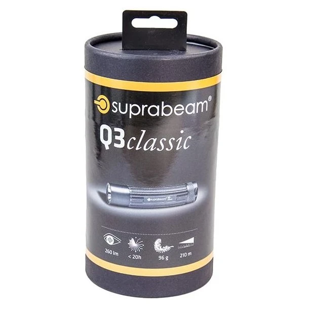 Q3 Classic fra danske Suprabeam er en klassisk lommelygte, der udmærker sig til professionelt- og alment hverdagsbrug. Lygten er ergonomisk og brugervenlig til langtrækkende inspektion med kun ét trin og fixed spotlight. Q3 Classic byder på mange smarte og innovative funktioner, bl.a. den nyeste LED Power Chip Teknologi.