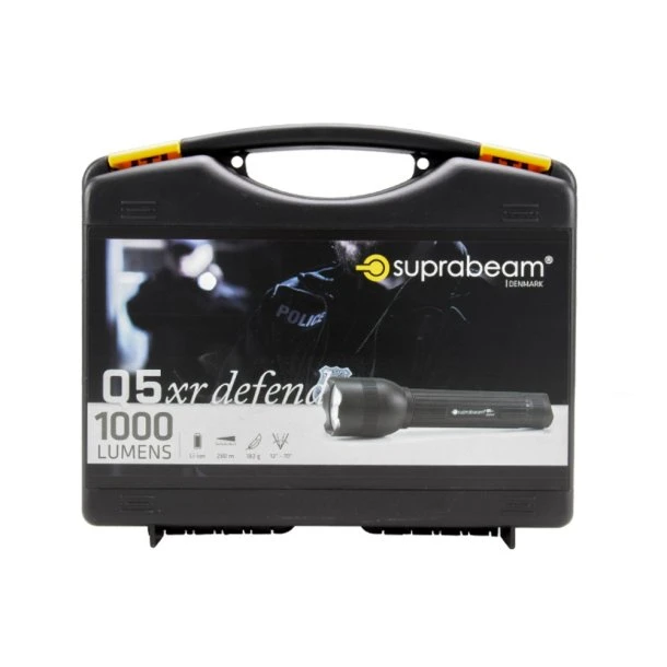 Q5xr Defend Lommelygte 1000 Lumen fra Suprabeam er Suprabeam’s mest avancerede lommelygte med intern ladning og 1000 lumens, som giver dig nok lys til de mest krævende opgaver. Hertil giver findes en praktisk vægoplader, som sørger for, at lommelygten altid er opladet og klar.